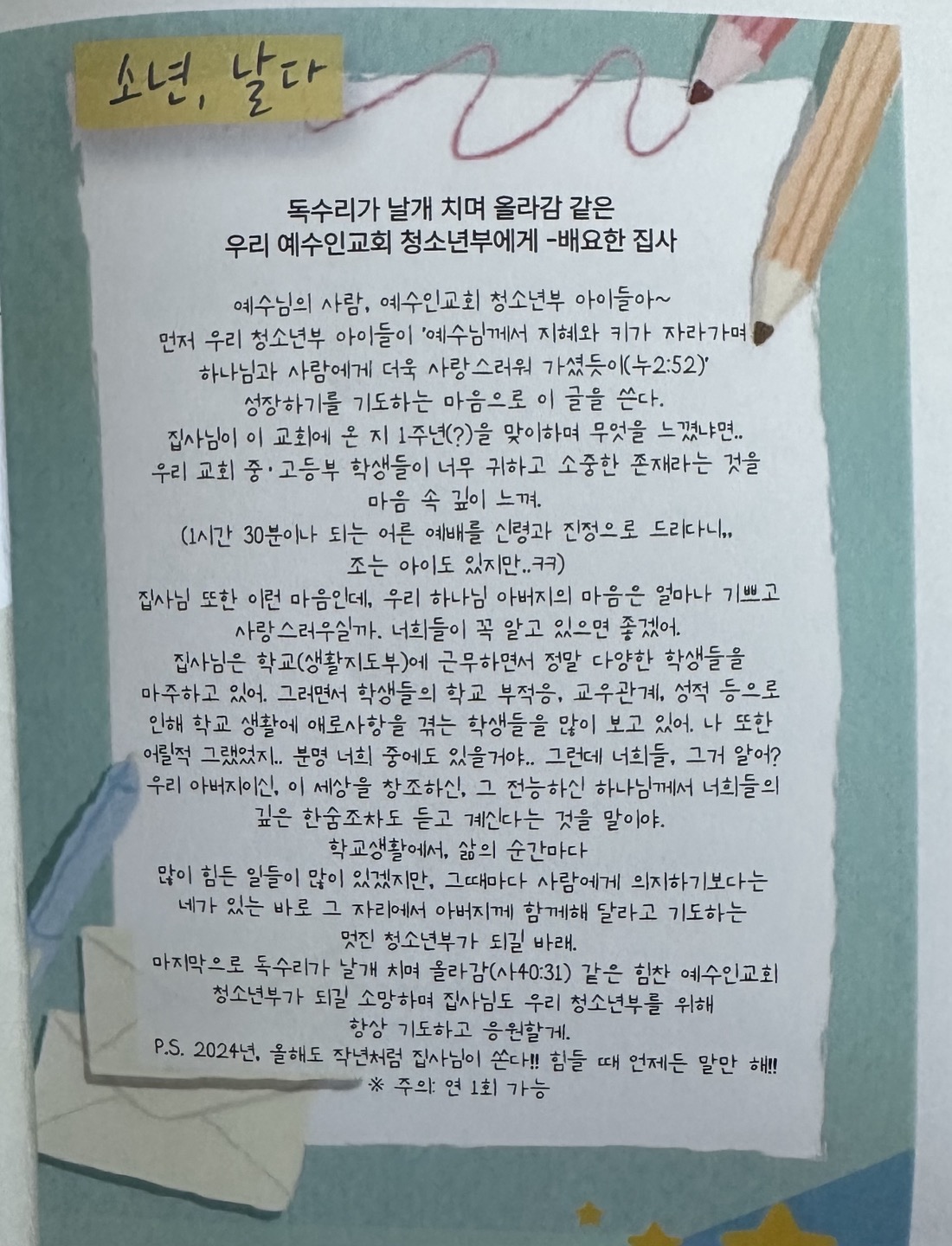우리교회4주년 축하메시지를 남겼어요