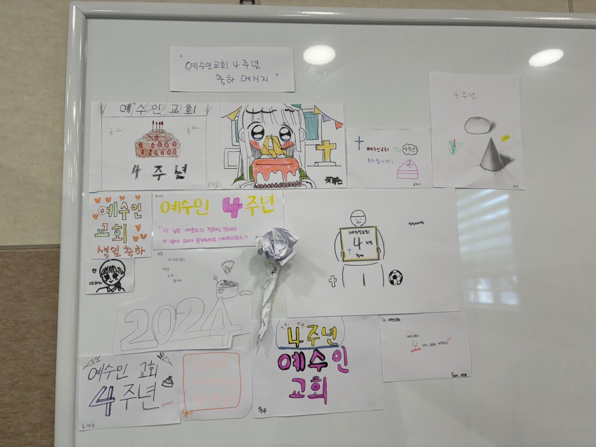 우리교회4주년 축하메시지를 남겼어요 페이지 정보 작성자 예수인교회 작성일24-02-15 07:44 조회83회 댓글0건 관련링크 이전글 다음글 목록 본문 2024년 2/4은 예수인 교회 설립4주년기념 예배가 드려진 날이예요. 벌써 4주년이라니~~~ 여기까지 오게하신 하나님 은혜에 감사드리며 많은 분들의 축하 속에 우리 청소년부 친구들도 각각 나름의 표현방법 대로 축하 메시지를 만들어 보았어요. "하나님 사랑해요" "예수인교회 4주년 축하드립니다" 댓글목록 등록된 댓글이 없습니다. 이전글 다음글 목록