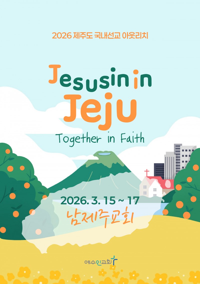 제주도 국내선교 아웃리치 페이지 정보 작성자 예수인교회 작성일26-02-05 10:16 조회35회 댓글0건 관련링크 이전글 다음글 목록 본문 <제주도 아웃리치>일시: 2026년 3월 15-17일장소: 남제주교회(서귀포)*교회수리 및 벽화, 전도 등등의 사역을 진행합니다. 1월 중 제주도 답사를 진행했습니다. 댓글목록 등록된 댓글이 없습니다. 이전글 다음글 목록