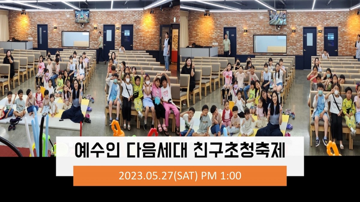 2023 예수인 다음세대 친구초청축제 페이지 정보 작성자 신동조 작성일23-05-28 22:31 조회143회 댓글0건 관련링크 이전글 다음글 목록 본문 2023.05.27 (토) 오후 1시 예수인 다음세대 친구초청축제 1부 풍선 버블 마술 공연 2부 달란트 시장 댓글목록 등록된 댓글이 없습니다. 이전글 다음글 목록