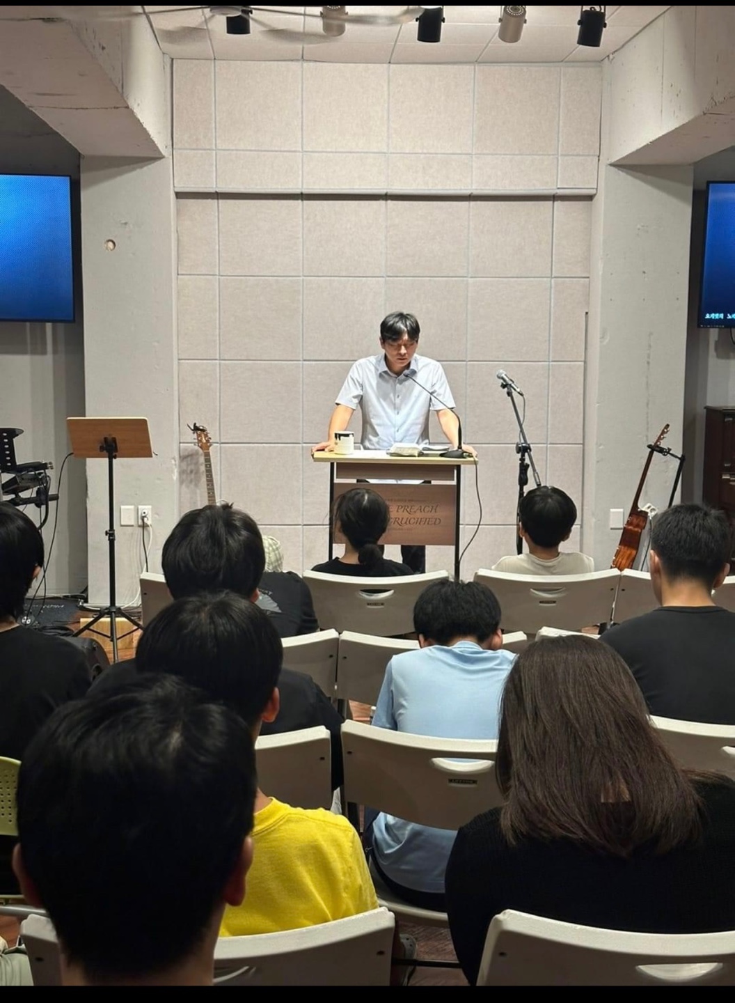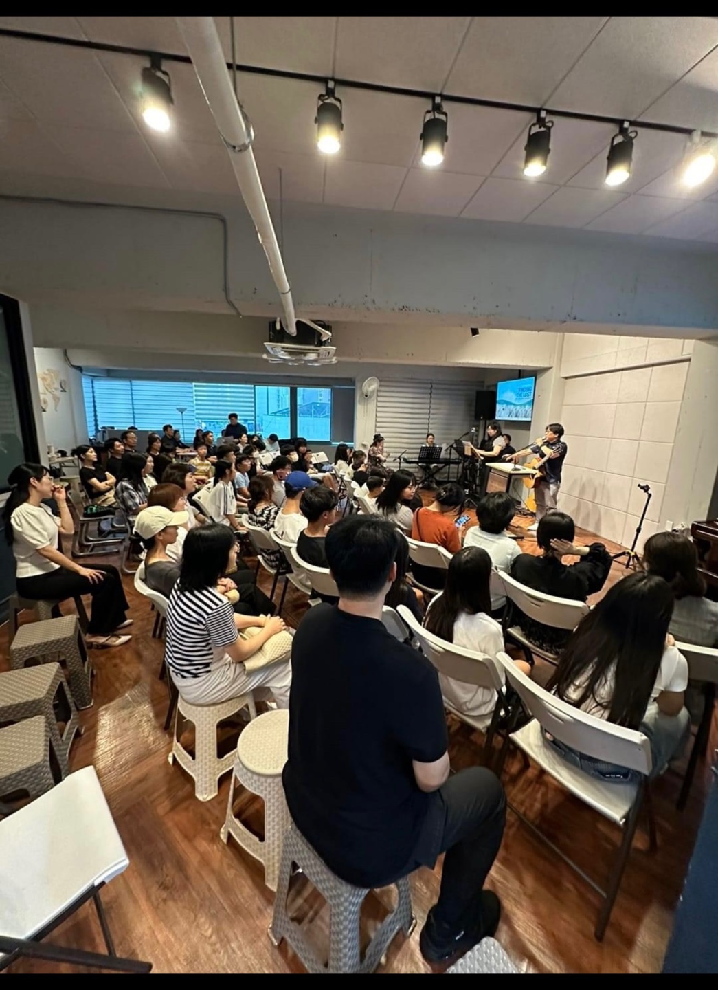 꽉찬 장소에서 꽉찬 사람들과 함께 즐겁게 교제하며 나누었습니다