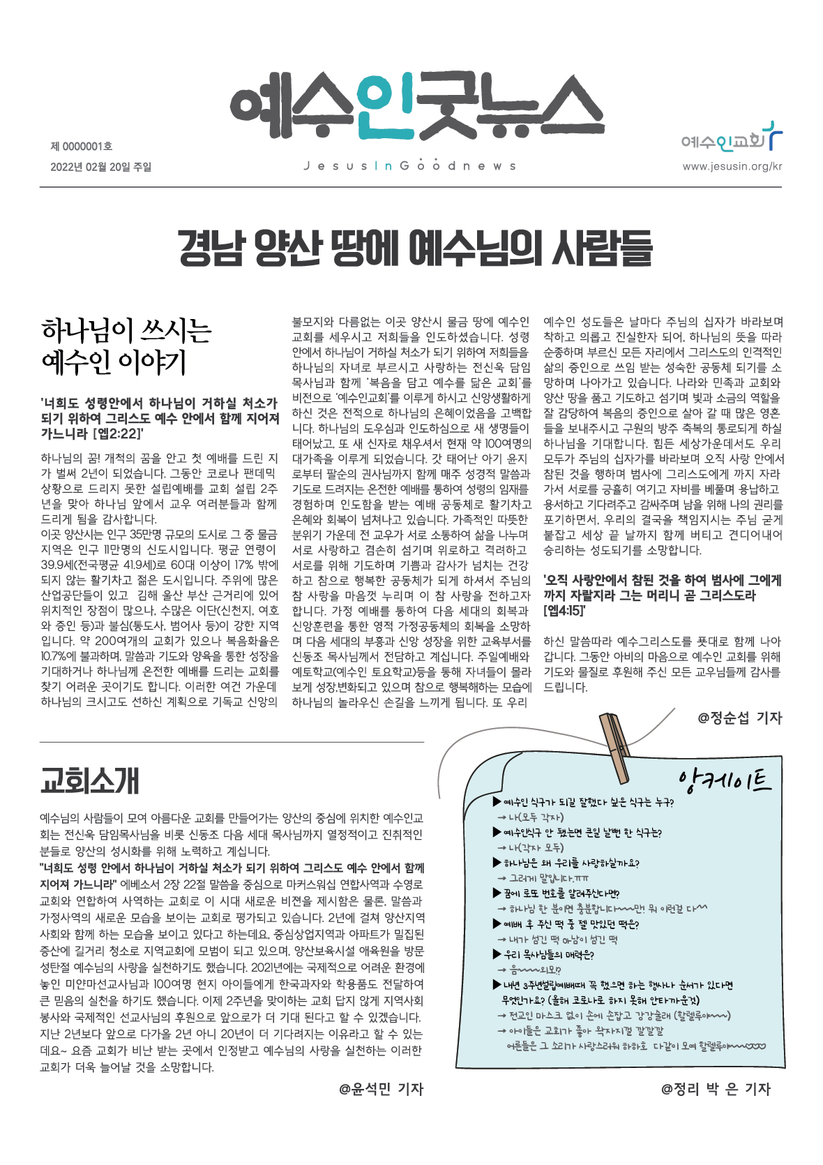 예수인굿뉴스신문(설립2주년기념) <--클릭